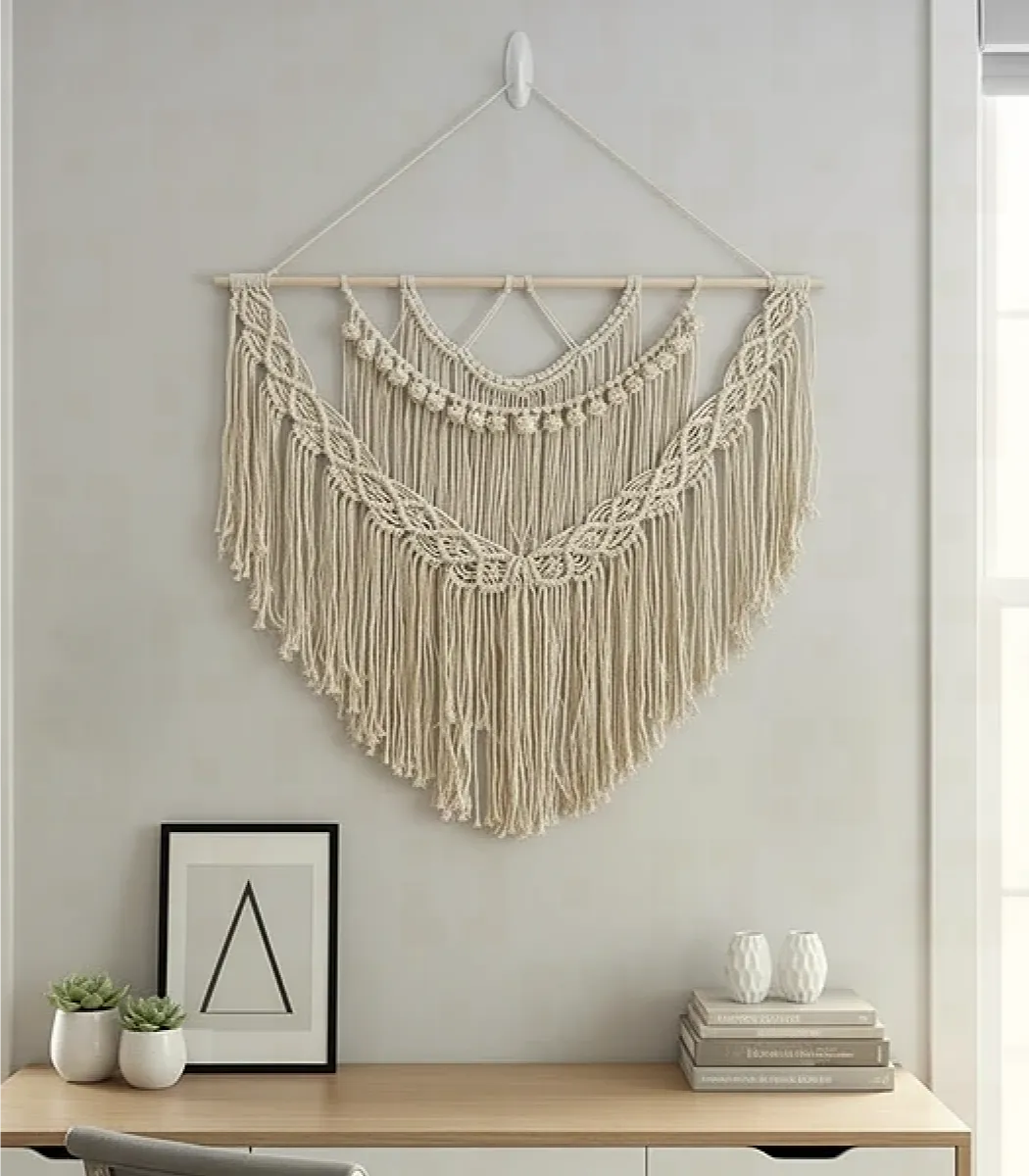 السعر الأصلي هو: 1,158 EGP.871 EGPالسعر الحالي هو: 871 EGP.أنتيكيانو بتخلي الجمال يعيش في كل تفاصيل ديكورات حائط مكرمية المصنوع بعناية. خامة الألياف والخشب المميزة بلون ابيض بتدي للقطعة طابع فني لا يُقاوم. قطعة بتجسد الجمال البوهيمي في أبهى صوره.