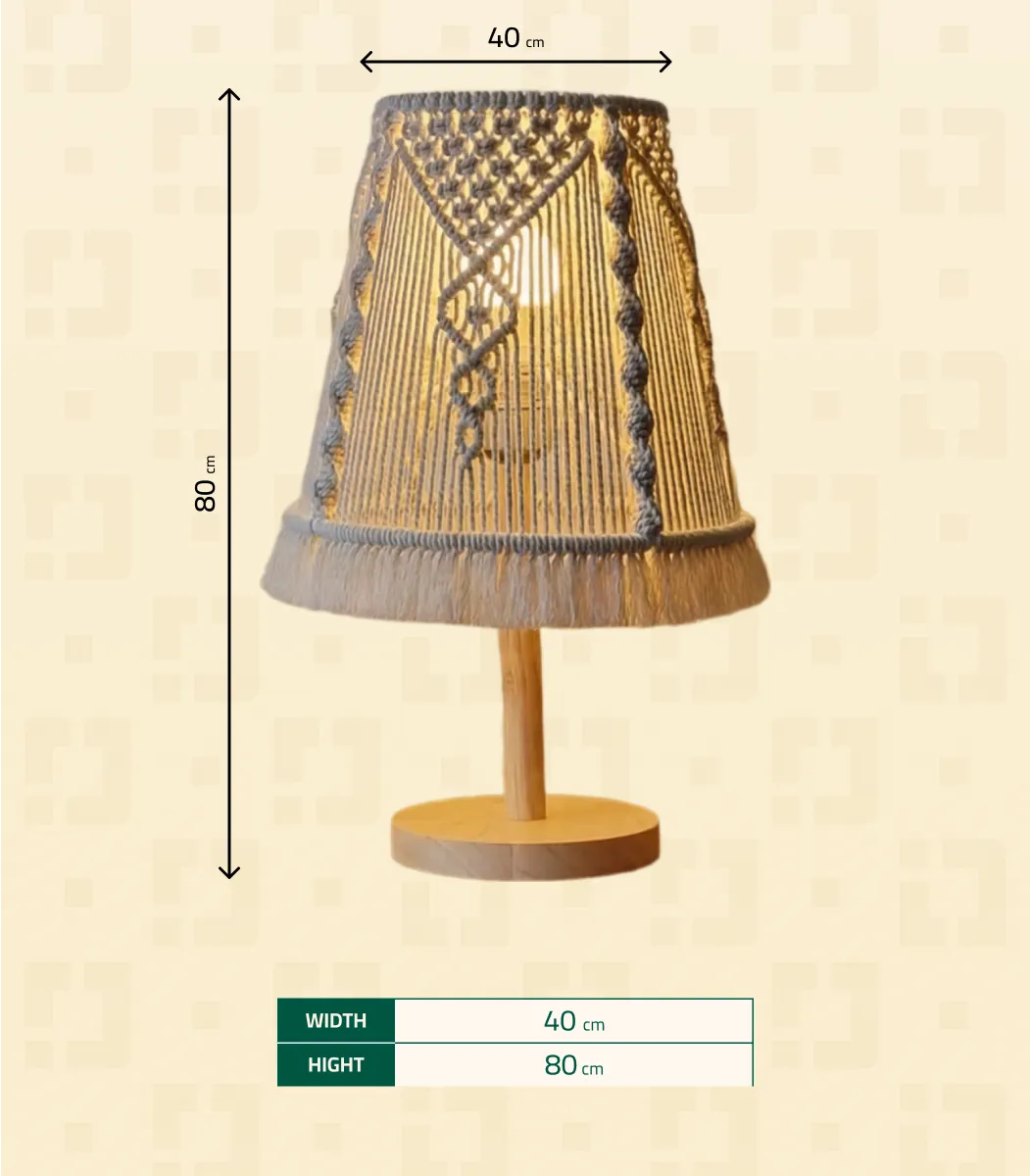 اكتشف سحر أباجورة المكرمية من براند أنتيكيانو. مصنوعة من الألياف والخشب عالية الجودة، بتصميم ريفي، حديث، بوهيمي، بسيط أنيق، وباللون بيج، تضيف لمسة دافئة وطبيعية لمساحتك. بمقاس 40×80 سم.