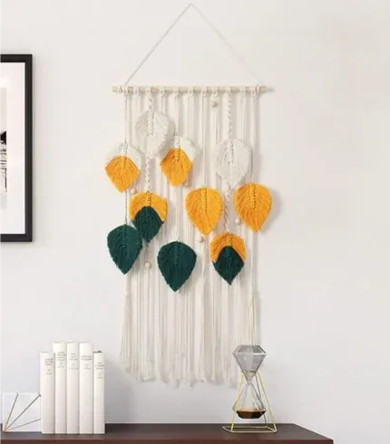 أحيانًا، كل ما تحتاجه غرفتك هو قطعة واحدة لتشعر بالاكتمال. هذه أوراق شجر مكرمية المصنوعة يدويًا من براند أنتيكيانو يُلبي هذا تمامًا. صُمم بعناية باستخدام الألياف والخشب، وبنمط بوهيمي, ريفي و متعدد الألوان، ليُشكل نقطة محورية أنيقة تنسجم بسلاسة مع التصميمات الداخلية الفريدة والطبيعية. مقاسه 75×120 سم.