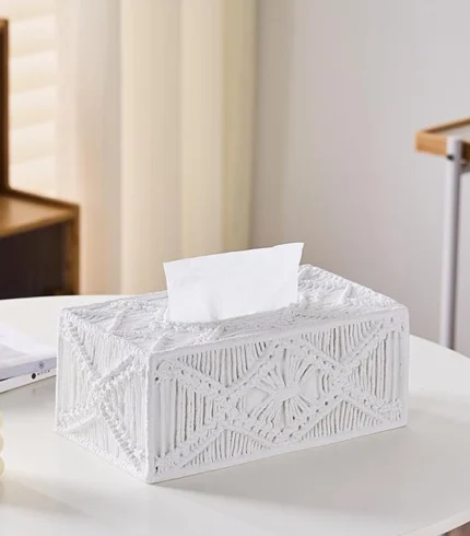أضف لمسة أنيقة إلى منزلك مع حاملة المناديل هذه المصنوعة يدويًا من براند أنتيكيانو. تتميز بتصميم ريفي، حديث، بوهيمي، بسيط ومصنوعة من خامة الألياف والخشب عالية الجودة، مما يجعلها مثالية لإضافة لمسة من الأناقة والعملية في مساحتك. متوفرة بلون اوف وايت وبمقاس 20×40 سم – قطعة ديكور رائعة تضيف الجمال إلى مساحتك.