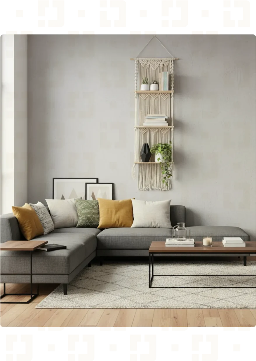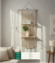 أضف لمسة من الدفء والتميز إلى حائطك مع رف مكرمية ٣ مستوى من براند Home Accessories. مصنوع من خشب،الياف بجودة عالية وبأسلوب بوهيمي أنيق، يأتي بلون اوف وايت ليتناسب مع مختلف أنماط الديكور. مثالي لغرف المعيشة أو النوم أو مداخل المنزل، ويضفي لمسة طبيعية وجمالية مصنوع خصيصاً لك. مناسب لمساحة بمقاس 160×50 سم.