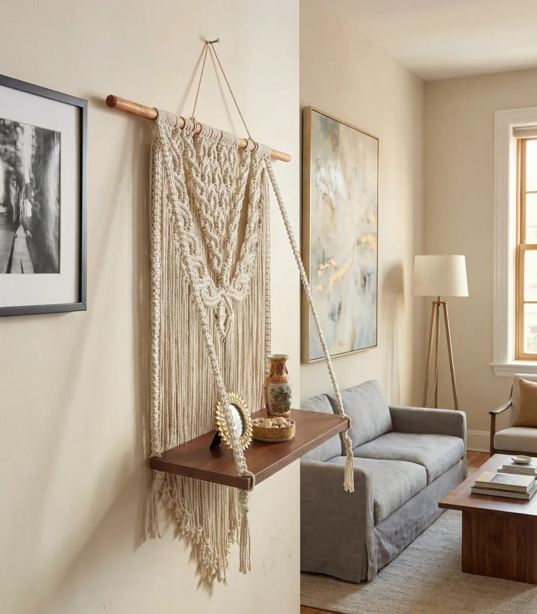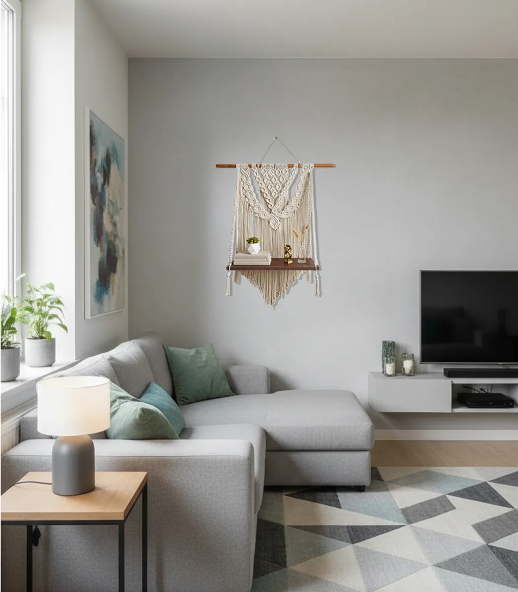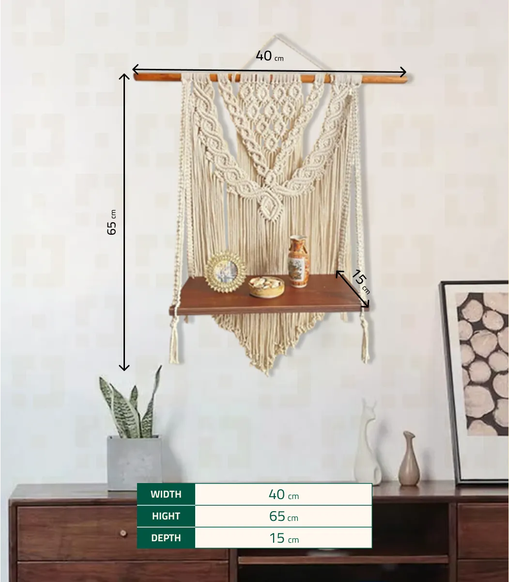 أضف لمسة من الدفء والتميز إلى حائطك مع رف مكرمية من براند Home Accessories. مصنوع من خشب،الياف بجودة عالية وبأسلوب بوهيمي أنيق، يأتي بلون اوف وايت ليتناسب مع مختلف أنماط الديكور. مثالي لغرف المعيشة أو النوم أو مداخل المنزل، ويضفي لمسة طبيعية وجمالية مصنوع خصيصاً لك. مناسب لمساحة بمقاس 65×40 سم.