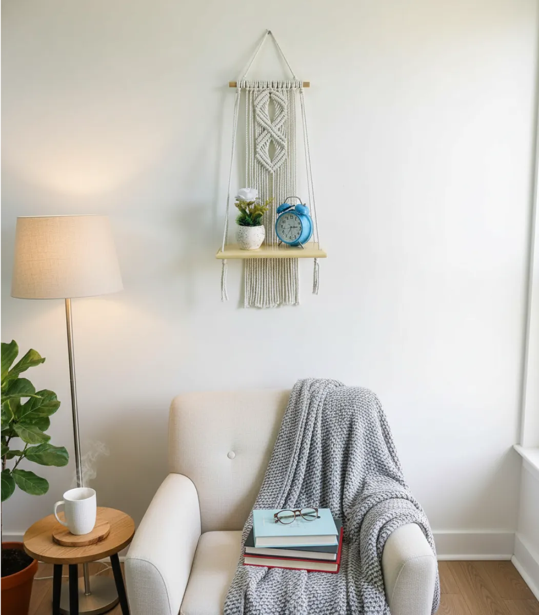 أضف لمسة من الدفء والتميز إلى حائطك مع رف مكرمية من براند Home Accessories. مصنوع من خشب،الياف بجودة عالية وبأسلوب بوهيمي أنيق، يأتي بلون اوف وايت ليتناسب مع مختلف أنماط الديكور. مثالي لغرف المعيشة أو النوم أو مداخل المنزل، ويضفي لمسة طبيعية وجمالية مصنوع خصيصاً لك. مناسب لمساحة بمقاس 60×20 سم.