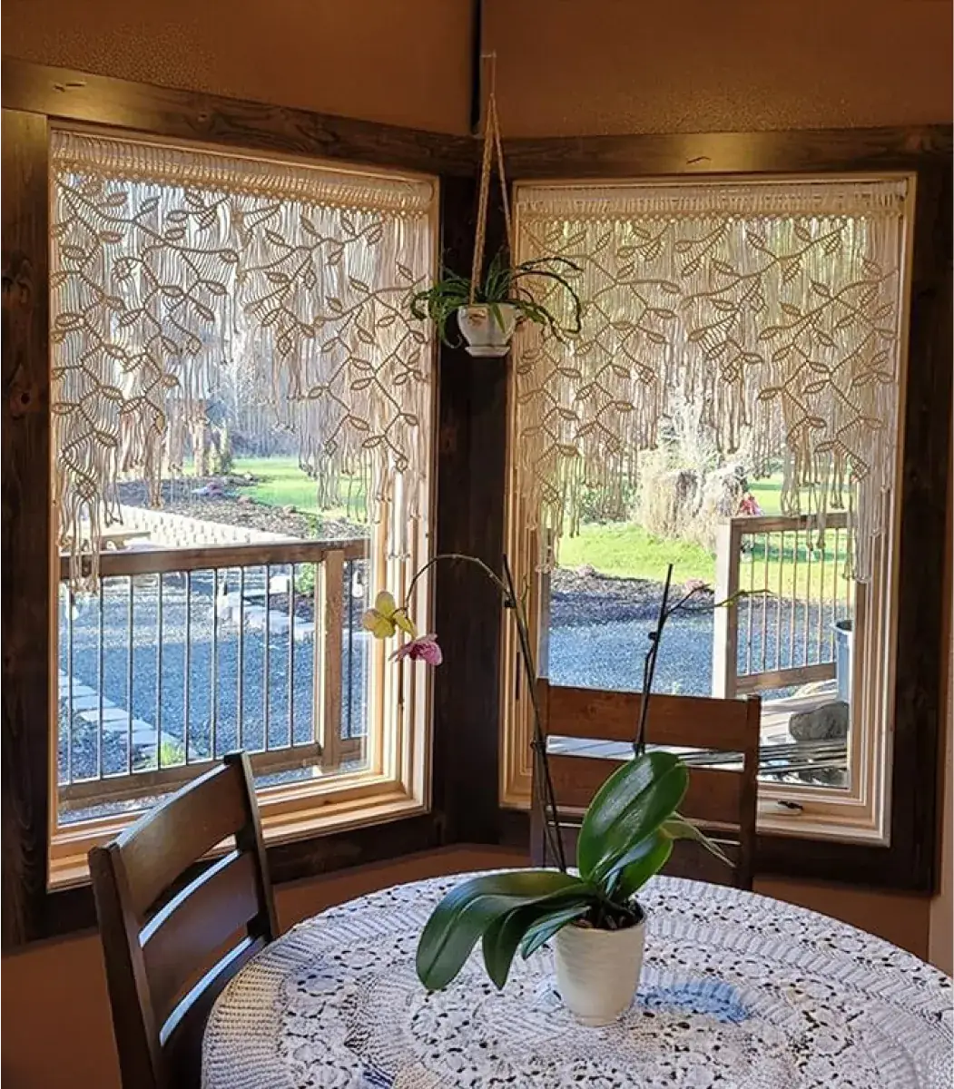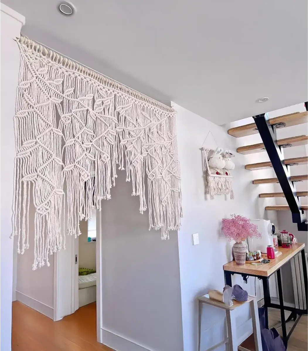 غيّر أجواء مساحتك مع ستائر مكرمية هذه من براند Decoro. مصنوعة بعناية من الألياف والخشب عالي الجودة، و بتصميم بوهيمي واوف وايت يعطي نعومةً وعمقًا على أي نافذة. سواءً كنت ترغب في دخول الضوء الطبيعي أو إضافة الخصوصية، فهو اللمسة النهائية المثالية. مصمم ليناسب المساحات التي يبلغ حجمها 90×90 سم.