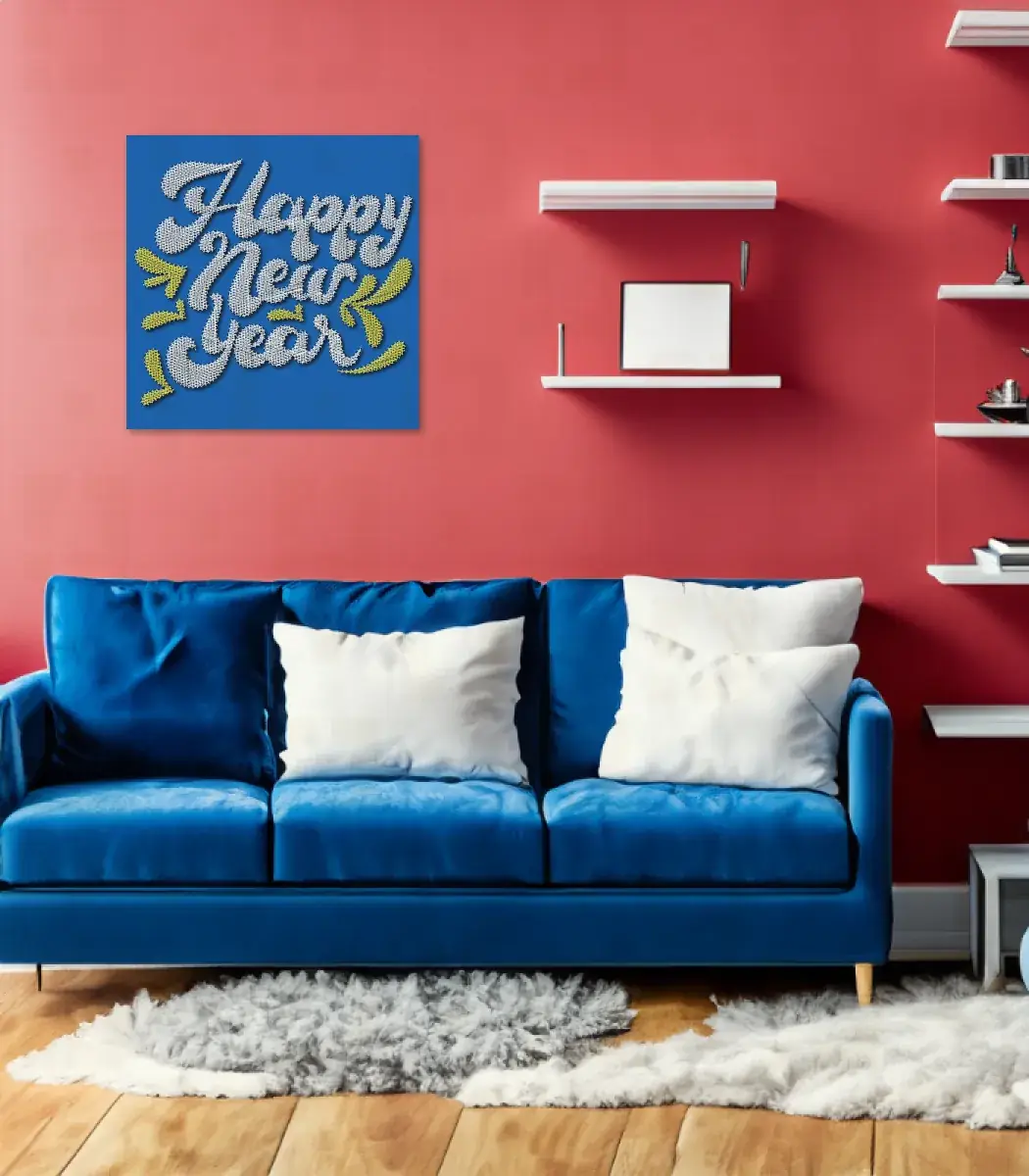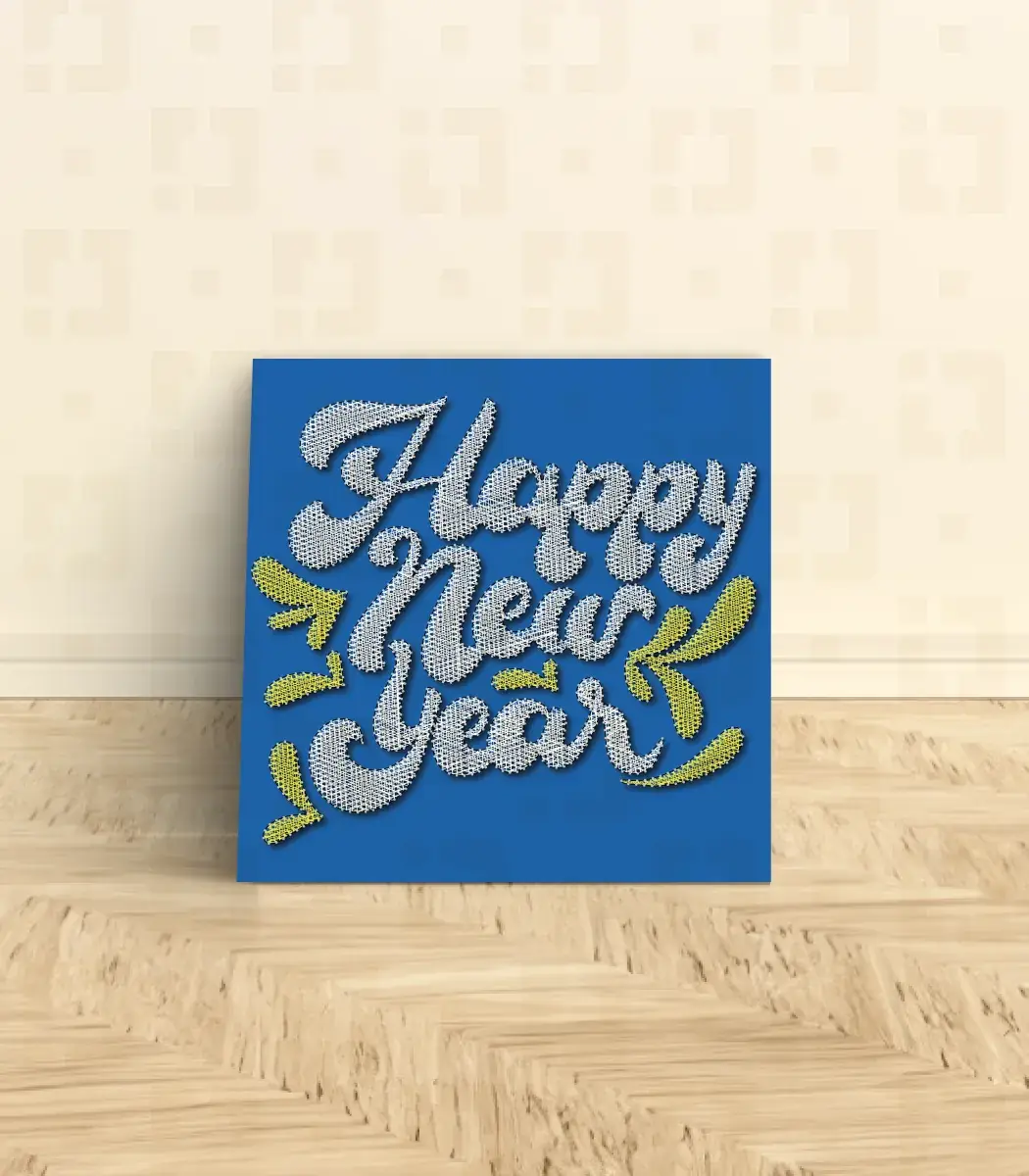 فن الخيوط المناسبات رأس السنة الجديدة، فن معاصر مصنوع يدوياً، لوحة فنية للحائط بتصميم عبارة “عام سعيد جديد” باستخدام مواد خام عالية الجودة، متوفر بألوان ازرق و بني و احمر.