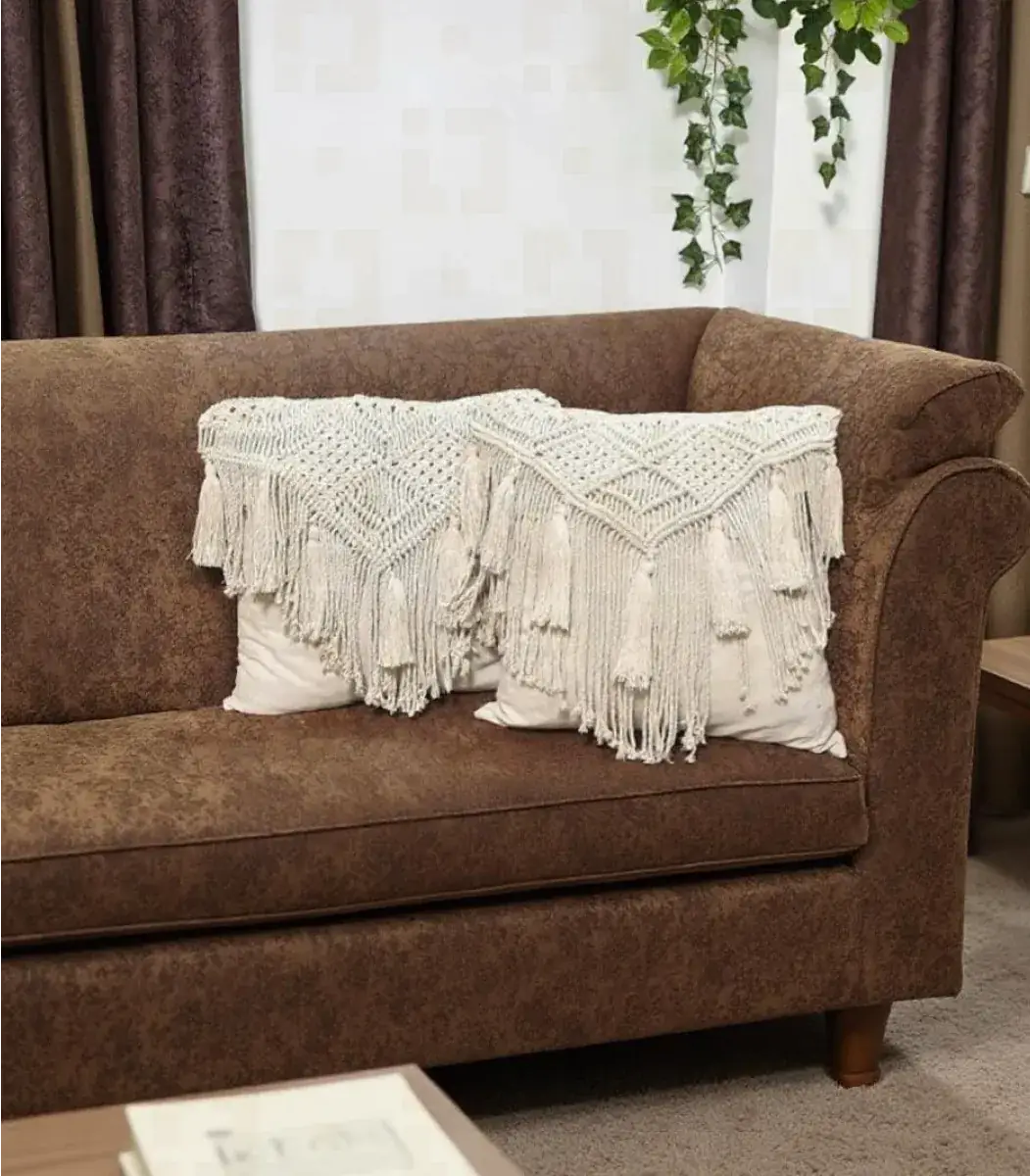 أضف لمسة من الأناقة إلى مساحتك مع غطاء الوسادة هذا المصنوع يدويًا من براند لمسة. مصنوع من ألياف، بتصميم حديث، متوفر بلون اوف وايت، ويأتي بمقاس 35×35 سم. مثالي لغرفة المعيشة أو النوم أو المكتب.