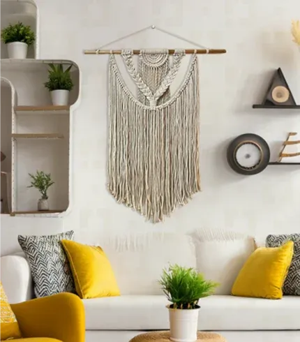 أحيانًا، كل ما تحتاجه غرفتك هو قطعة واحدة لتشعر بالاكتمال. هذه مكرمية معلقة علي الحائط المصنوعة يدويًا من براند أنتيكيانو يُلبي هذا تمامًا. صُمم بعناية باستخدام الألياف والخشب، وبنمط ريفي, حديث, بوهيمي, كلاسيكي, بسيط وبلون اوف وايت، ليُشكل نقطة محورية أنيقة تنسجم بسلاسة مع التصميمات الداخلية الفريدة والطبيعية. مقاسه 45×40 سم.