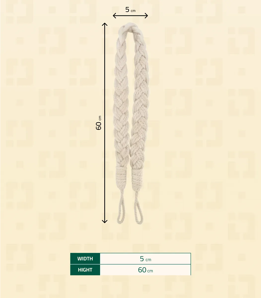 أضف لمسة أنيقة إلى منزلك مع اربطة الستائر هذه المصنوعة يدويًا من براند أنتيكيانو. تتميز بتصميم ريفي، حديث، بوهيمي، بسيط ومصنوعة من خامة ألياف عالية الجودة، مما يجعلها مثالية لإضافة لمسة من الأناقة والعملية في مساحتك. متوفرة بلون بيج وبمقاس 5×60 سم – قطعة ديكور رائعة تضيف الجمال إلى مساحتك.