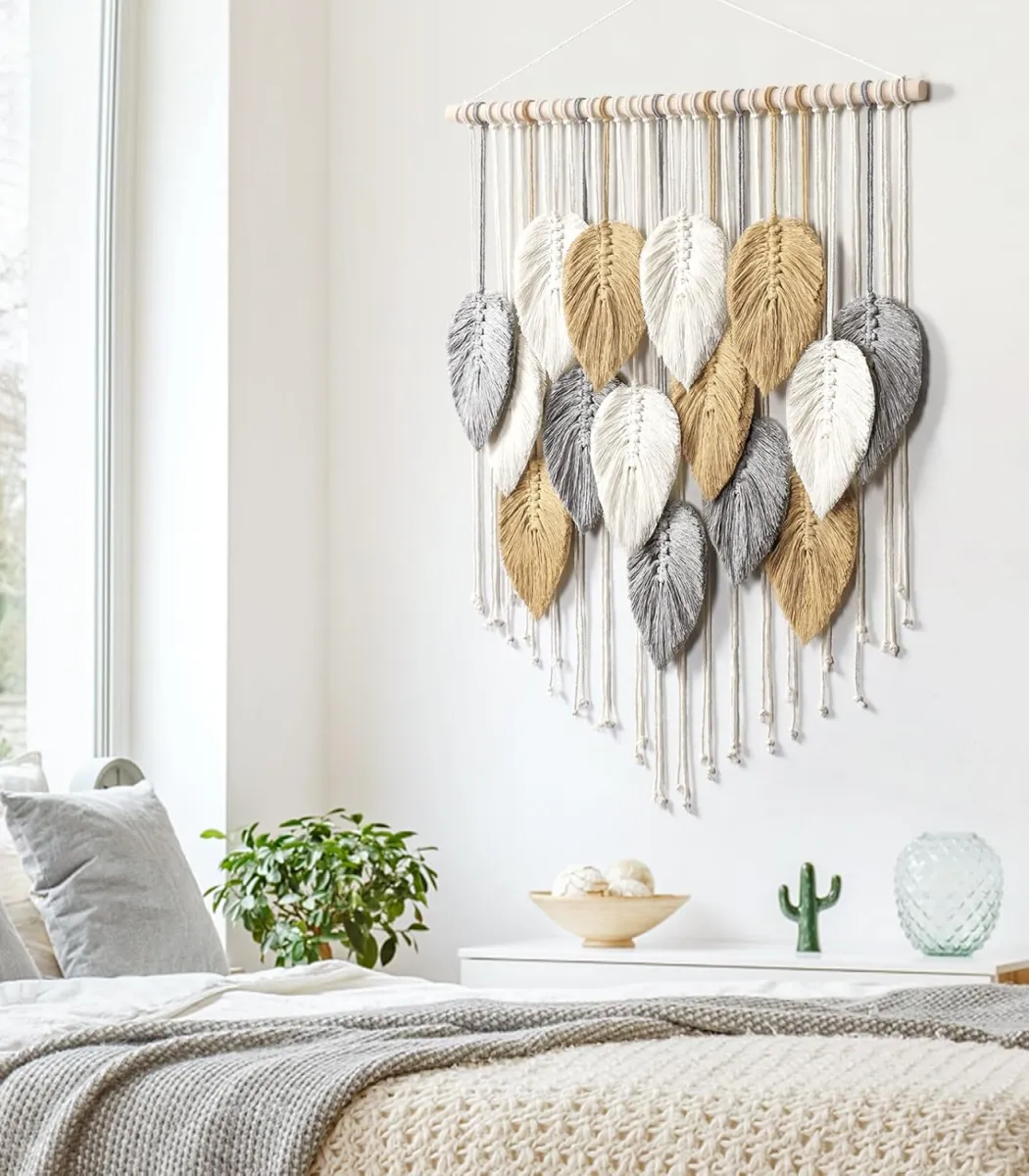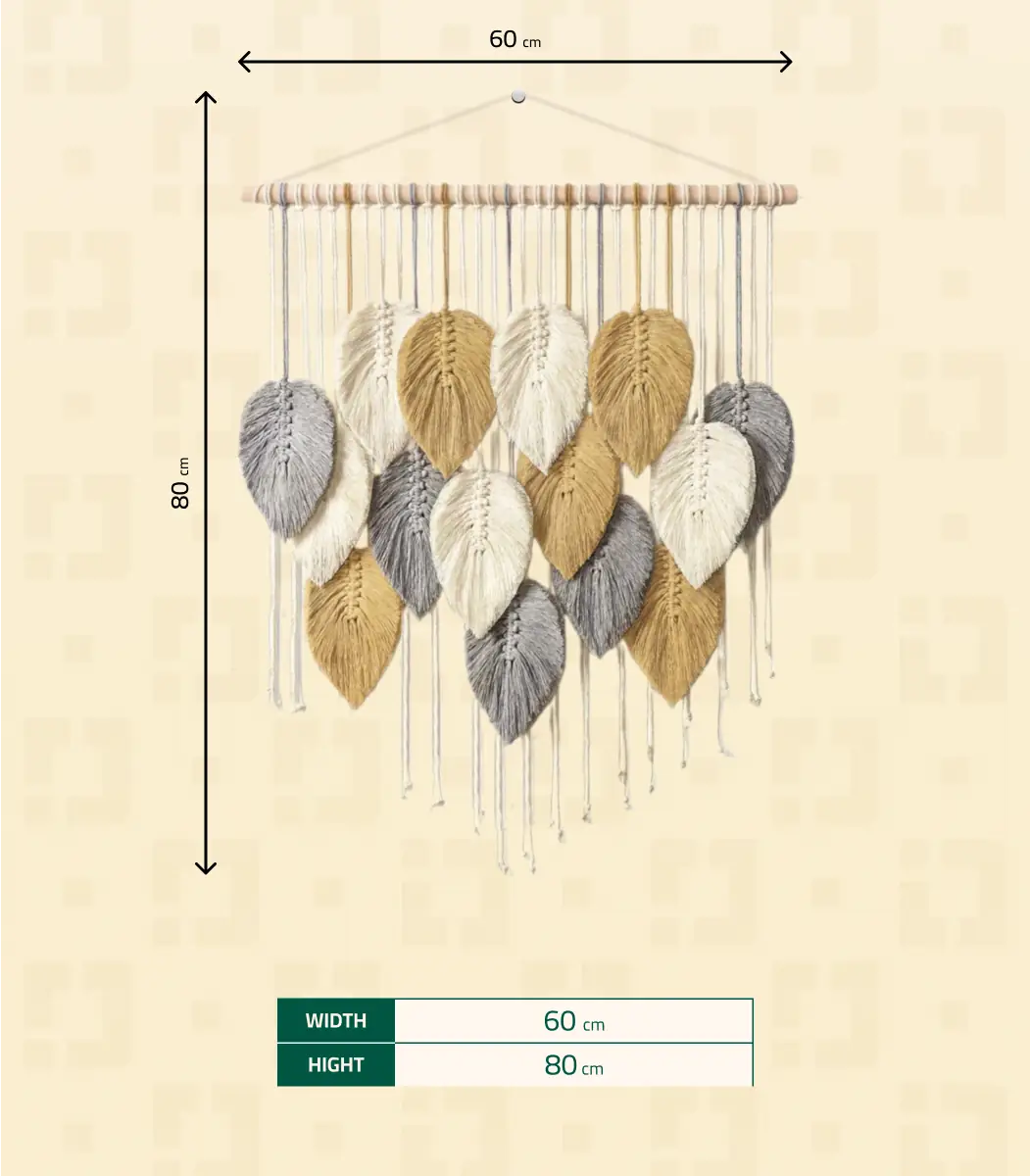أحيانًا، كل ما تحتاجه غرفتك هو قطعة واحدة لتشعر بالاكتمال. هذه أوراق شجر مكرمية المصنوعة يدويًا من براند أنتيكيانو يُلبي هذا تمامًا. صُمم بعناية باستخدام الألياف والخشب، وبنمط بوهيمي, ريفي و متعدد الألوان، ليُشكل نقطة محورية أنيقة تنسجم بسلاسة مع التصميمات الداخلية الفريدة والطبيعية. مقاسه 60×80 سم.