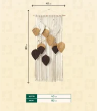 أحيانًا، كل ما تحتاجه غرفتك هو قطعة واحدة لتشعر بالاكتمال. هذه أوراق شجر مكرمية المصنوعة يدويًا من براند أنتيكيانو يُلبي هذا تمامًا. صُمم بعناية باستخدام الألياف والخشب، وبنمط بوهيمي, ريفي و متعدد الألوان، ليُشكل نقطة محورية أنيقة تنسجم بسلاسة مع التصميمات الداخلية الفريدة والطبيعية. مقاسه 75×100 سم.