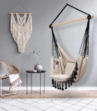 أنتيكيانو بتضيف لمسة من السحر لكل بيت مع ارجوحة مكرمية المصنوع بإتقان يدوي. مصنوع يدويًا من ألياف، بلون متعدد الألوان يعبّر عن البساطة والرقي في آنٍ واحد. اختيار أنيق يضيف لمسة من الراحة والبساطة الراقية لبيتك.