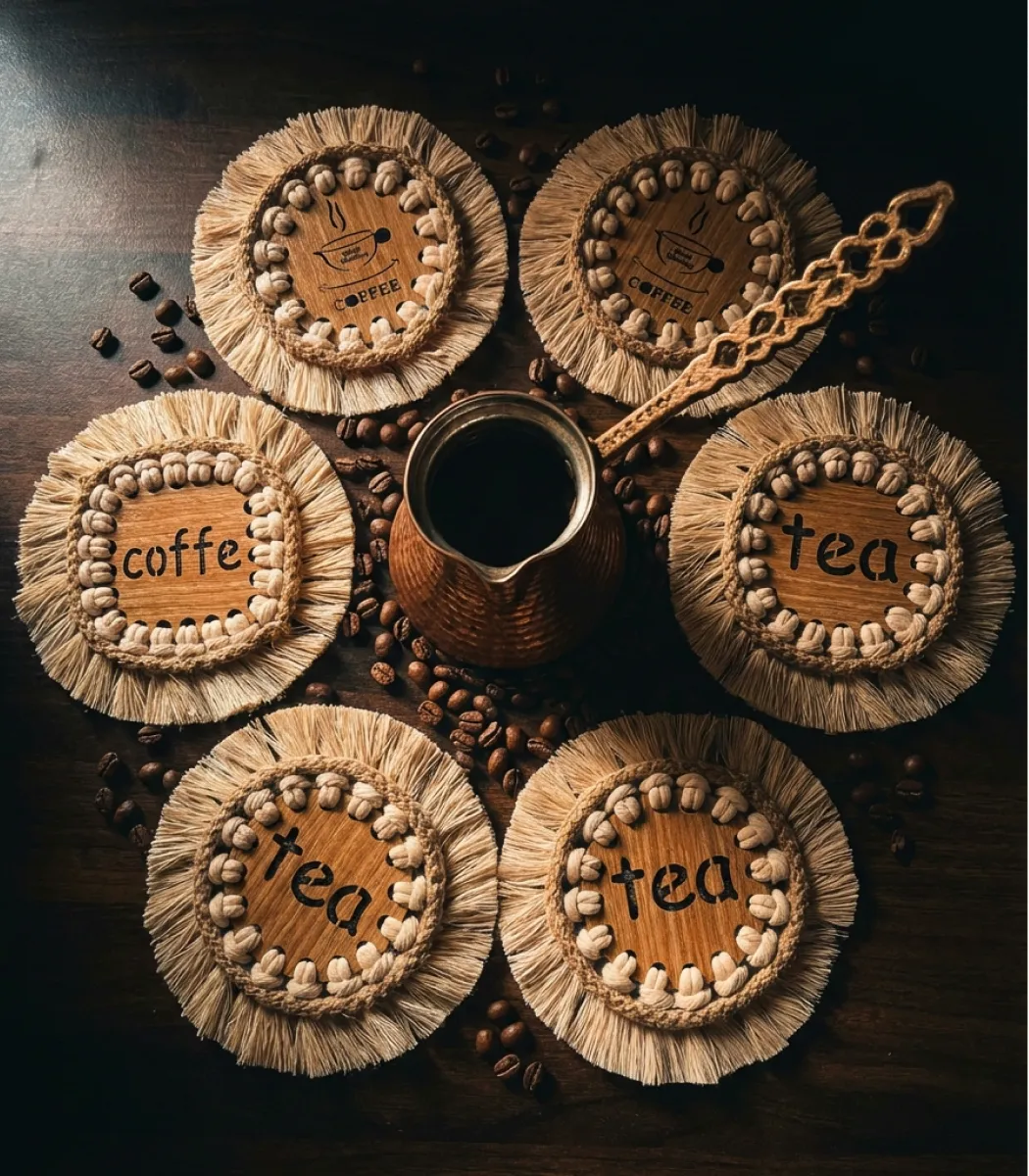 طاولةٌ ارتقى بها HANDS إلى مستوى الفن. تقدم HANDS طقم قواعد الأكواب البوهيمية المكون من ست قطع – دوائر من الألياف مصنوعة يدويًا بألوان زاهية متعددة، تضفي دفئًا بوهيميًا على أي سطح توضع عليه. رفاهية صغيرة ذات حضور طاغٍ، حيث تتحول الطقوس اليومية إلى لحظات جمال.