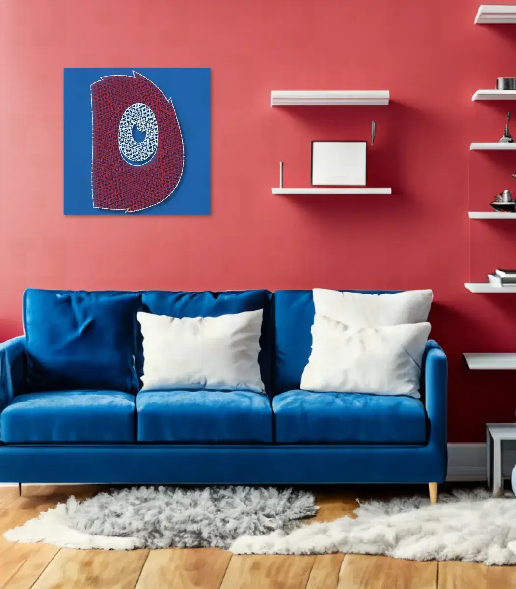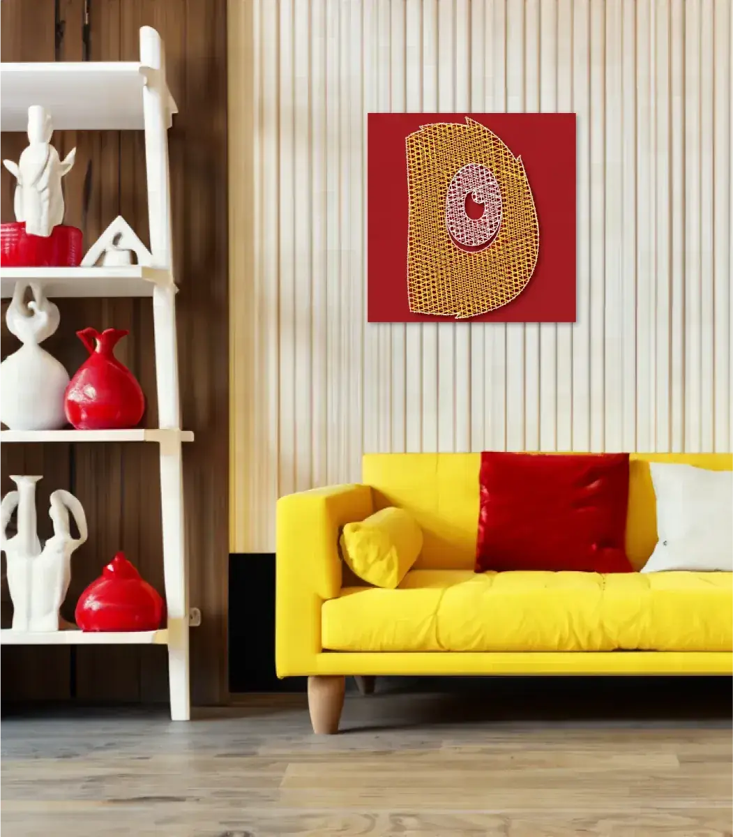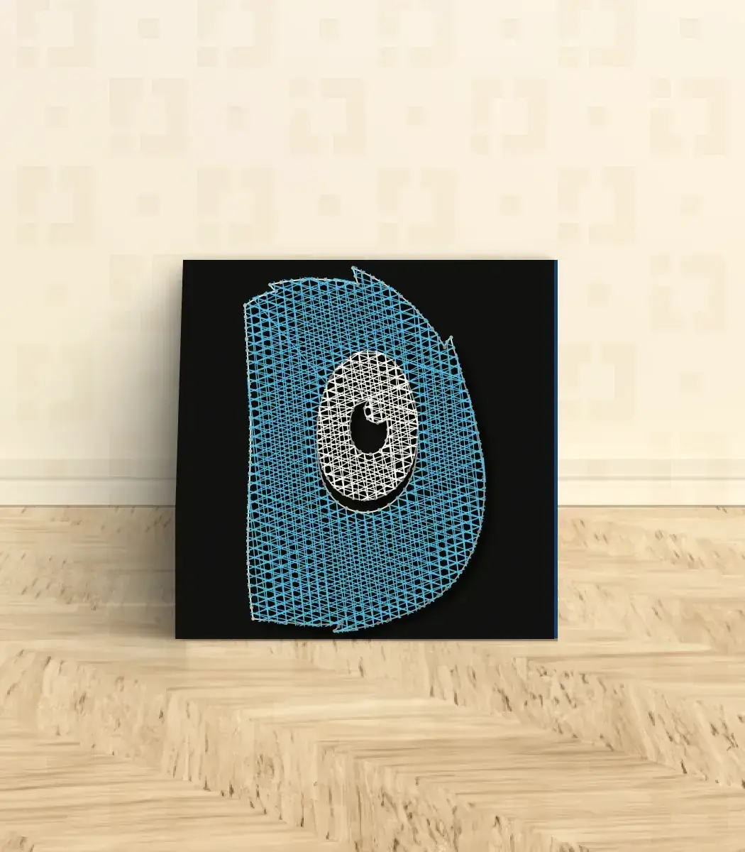 فن الخيوط تصميم الخطوط الحروف، فن معاصر مصنوع يدوياً، لوحة فنية للحائط بتصميم حرف ال D باستخدام مواد خام عالية الجودة، متوفر بألوان احمر و ازرق و اسود.