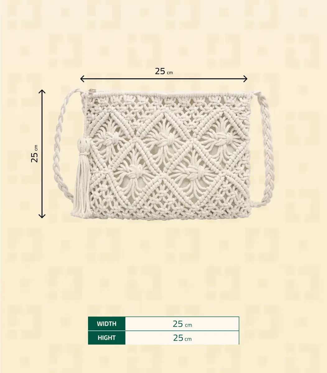 أكمل إطلالتك مع حقيبة اليد هذه المصنوعة يدويًا من براند أنتيكيانو. مصنوعة من خامة ألياف عالية الجودة وبتصميم ريفي، حديث، بوهيمي، بسيط عصري. متوفرة بلون اوف وايت وبمقاس 25×25 سم – إكسسوار أنيق وعملي مناسب للاستخدام اليومي أو كهدية مميزة.