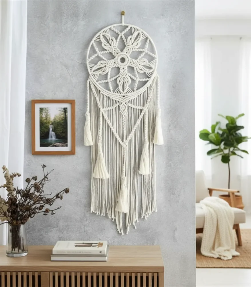 أنتيكيانو بتقدملك مزيج فريد بين الأصالة والعصرية في دريم كاتشر. بتصميم بوهيمي مميز وخامة الألياف والخشب تضيف لمسة من البساطة والفخامة. لكل من يحب التفاصيل، هذه القطعة تحكي قصة من الجمال والدفء.