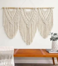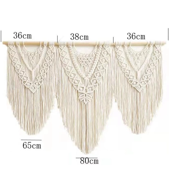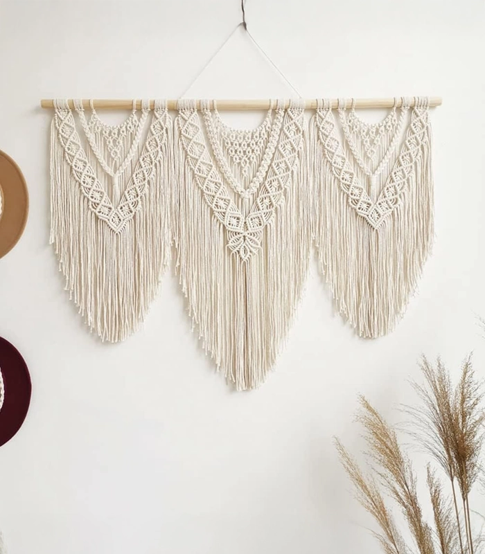 أنتيكيانو بتخلي الجمال يعيش في كل تفاصيل ديكورات حائط مكرمية المصنوع بعناية. خامة الألياف والخشب المميزة بلون ابيض بتدي للقطعة طابع فني لا يُقاوم. قطعة بتجسد الجمال البوهيمي في أبهى صوره.
