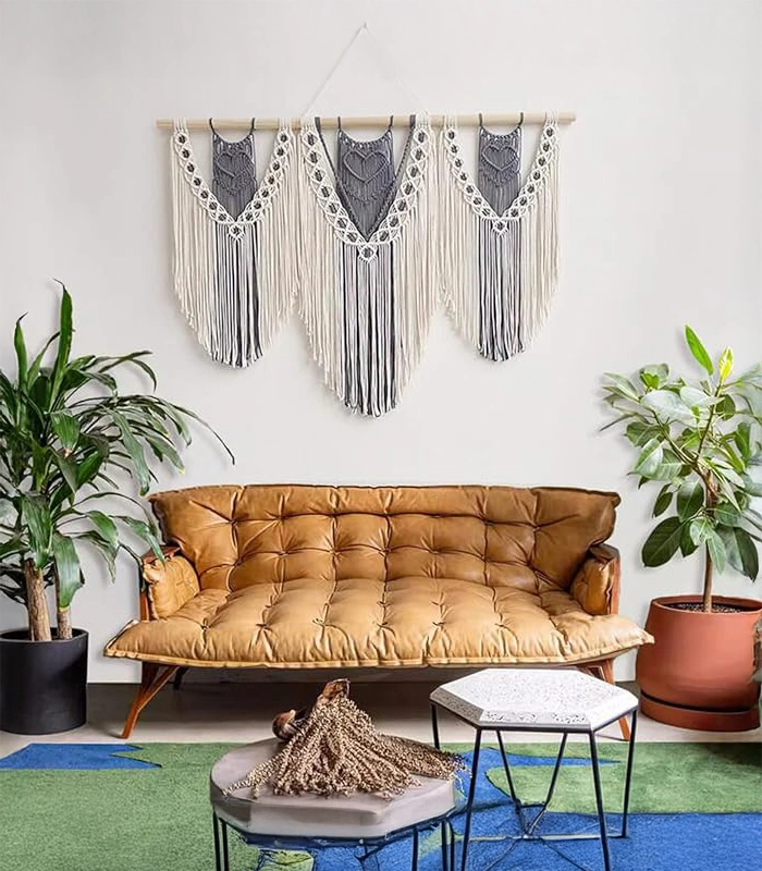 أنتيكيانو بتخلي الفن جزء من بيتك مع ديكورات حائط مكرمية handmade الجميل. مصنوع يدويًا من الألياف والخشب الطبيعي بلون متعدد الألوان ناعم يعبّر عن البساطة والفخامة. مش مجرد ديكور، دي قطعة بتحكي عنك وعن ذوقك.