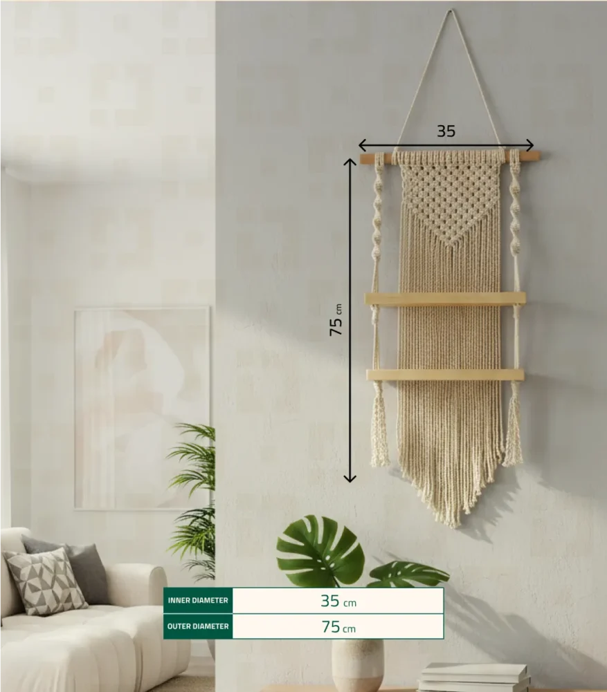 أضف لمسة من الدفء والتميز إلى حائطك مع رف مكرمية ٢ مستوى من براند Home Accessories. مصنوع من خشب،الياف بجودة عالية وبأسلوب بوهيمي أنيق، يأتي بلون اوف وايت ليتناسب مع مختلف أنماط الديكور. مثالي لغرف المعيشة أو النوم أو مداخل المنزل، ويضفي لمسة طبيعية وجمالية مصنوع خصيصاً لك. مناسب لمساحة بمقاس 80×30 سم.
