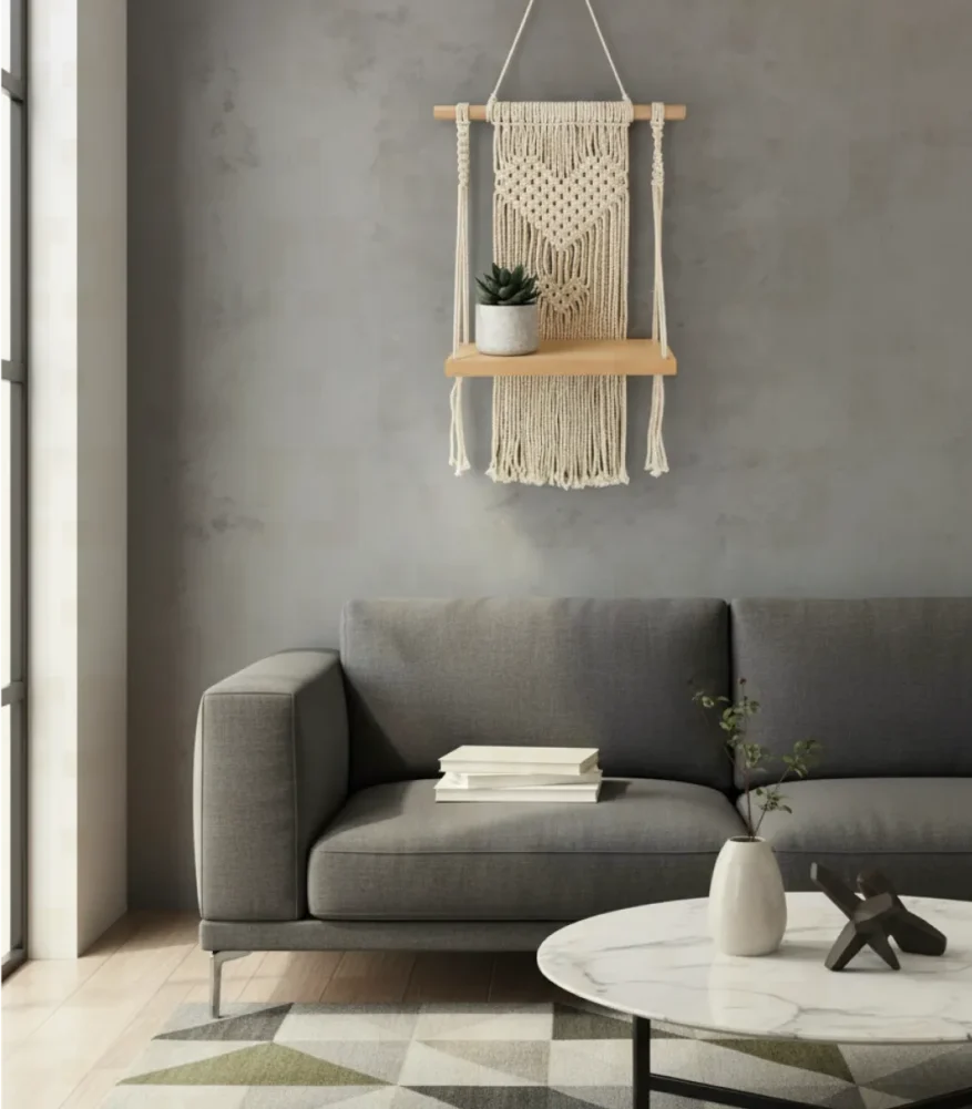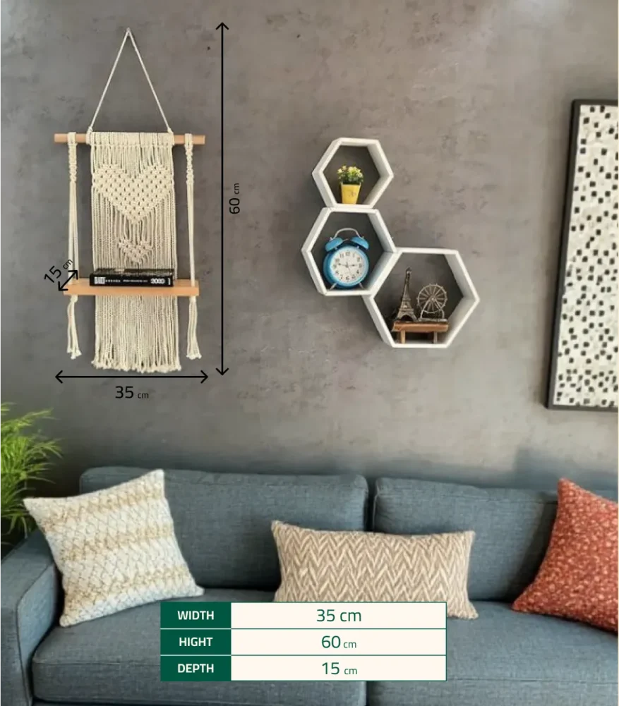 أضف لمسة من الدفء والتميز إلى حائطك مع رف مكرمية من براند Home Accessories. مصنوع من خشب،الياف بجودة عالية وبأسلوب بوهيمي أنيق، يأتي بلون اوف وايت ليتناسب مع مختلف أنماط الديكور. مثالي لغرف المعيشة أو النوم أو مداخل المنزل، ويضفي لمسة طبيعية وجمالية مصنوع خصيصاً لك. مناسب لمساحة بمقاس 60×35 سم.