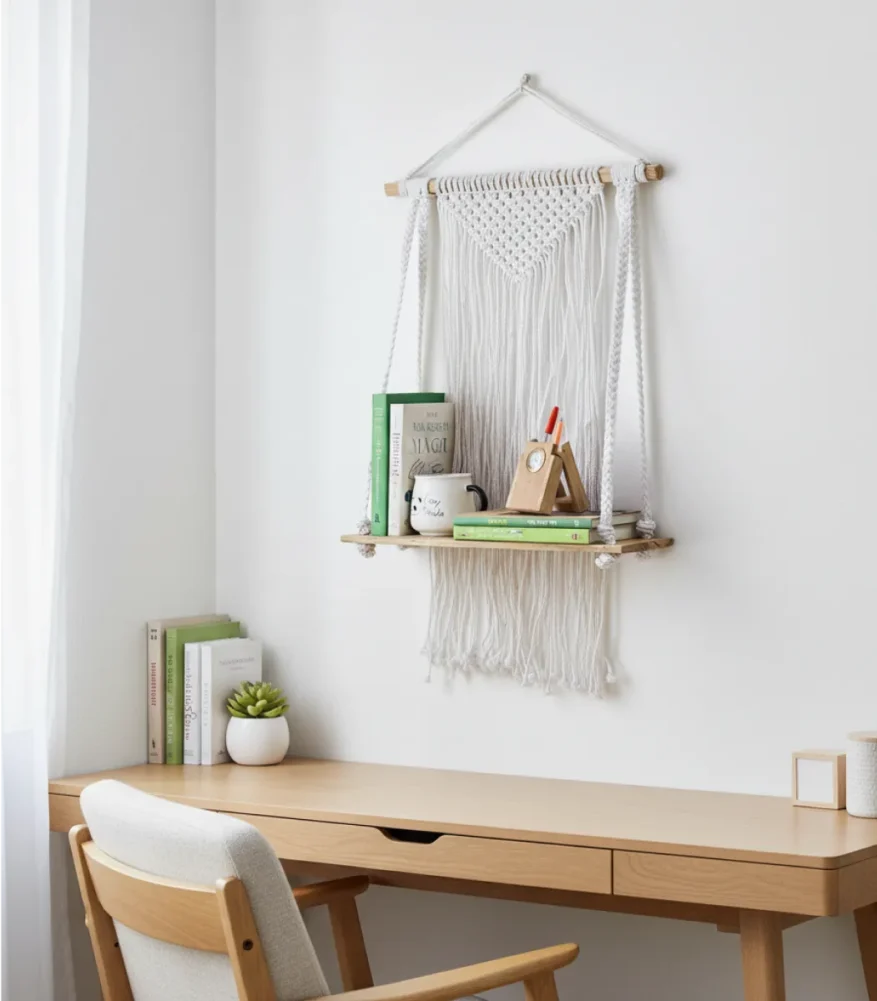 أضف لمسة من الدفء والتميز إلى حائطك مع رف مكرمية من براند Home Accessories. مصنوع من خشب،الياف بجودة عالية وبأسلوب بوهيمي أنيق، يأتي بلون ابيض ليتناسب مع مختلف أنماط الديكور. مثالي لغرف المعيشة أو النوم أو مداخل المنزل، ويضفي لمسة طبيعية وجمالية مصنوع خصيصاً لك. مناسب لمساحة بمقاس 60×30 سم.