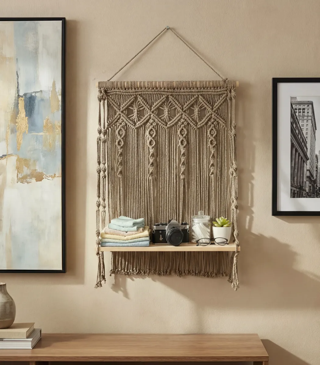 أضف لمسة من الدفء والتميز إلى حائطك مع رف مكرمية من براند Home Accessories. مصنوع من خشب،الياف بجودة عالية وبأسلوب بوهيمي أنيق، يأتي بلون بيج ليتناسب مع مختلف أنماط الديكور. مثالي لغرف المعيشة أو النوم أو مداخل المنزل، ويضفي لمسة طبيعية وجمالية مصنوع خصيصاً لك. مناسب لمساحة بمقاس 70×50 سم.