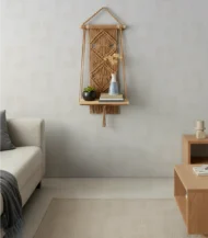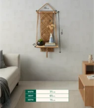 أضف لمسة من الدفء والتميز إلى حائطك مع رف مكرمية من براند Home Accessories. مصنوع من خشب،الياف بجودة عالية وبأسلوب بوهيمي أنيق، يأتي بلون بني ليتناسب مع مختلف أنماط الديكور. مثالي لغرف المعيشة أو النوم أو مداخل المنزل، ويضفي لمسة طبيعية وجمالية مصنوع خصيصاً لك. مناسب لمساحة بمقاس 65×35 سم.