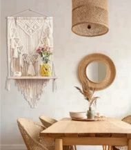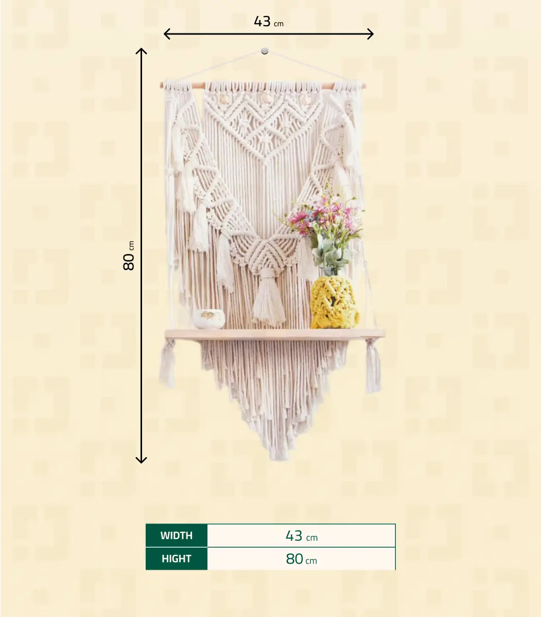 أضف لمسة من الدفء والتميز إلى حائطك مع رف مكرمية من براند أنتيكيانو. مصنوع من الألياف والخشب بجودة عالية وبأسلوب بوهيمي أنيق، يأتي بلون ابيض ليتناسب مع مختلف أنماط الديكور. مثالي لغرف المعيشة أو النوم أو مداخل المنزل، ويضفي لمسة طبيعية وجمالية مصنوع خصيصاً لك. مناسب لمساحة بمقاس 43×80 سم.