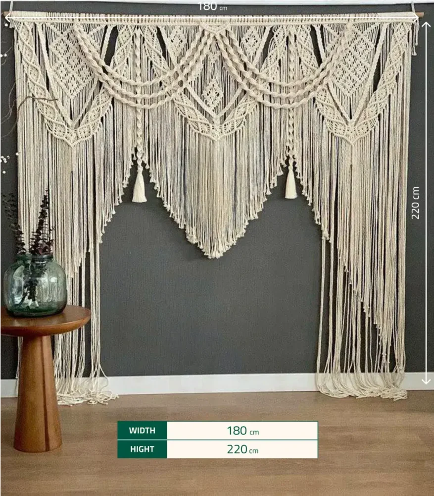 غيّر أجواء مساحتك مع ستارة مكرمية لحفل الزفاف هذه من براند Decoro. مصنوعة بعناية من الألياف والخشب عالي الجودة، و بتصميم بوهيمي واوف وايت يعطي نعومةً وعمقًا على أي مساحة. سواءً كنت ترغب في دخول الضوء الطبيعي أو إضافة الخصوصية، فهو اللمسة النهائية المثالية. مصمم ليناسب المساحات التي يبلغ حجمها 220×180 سم.
