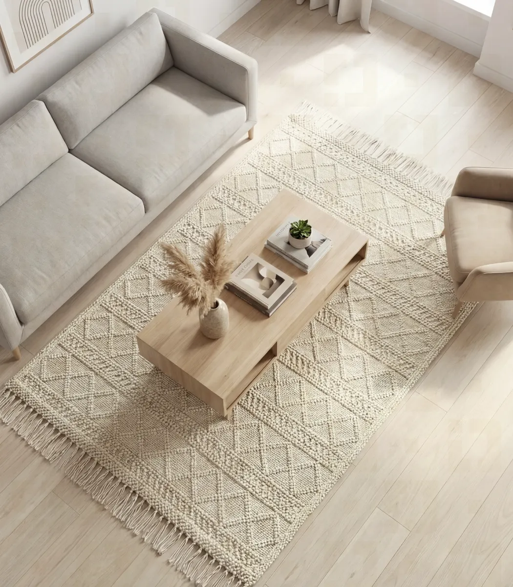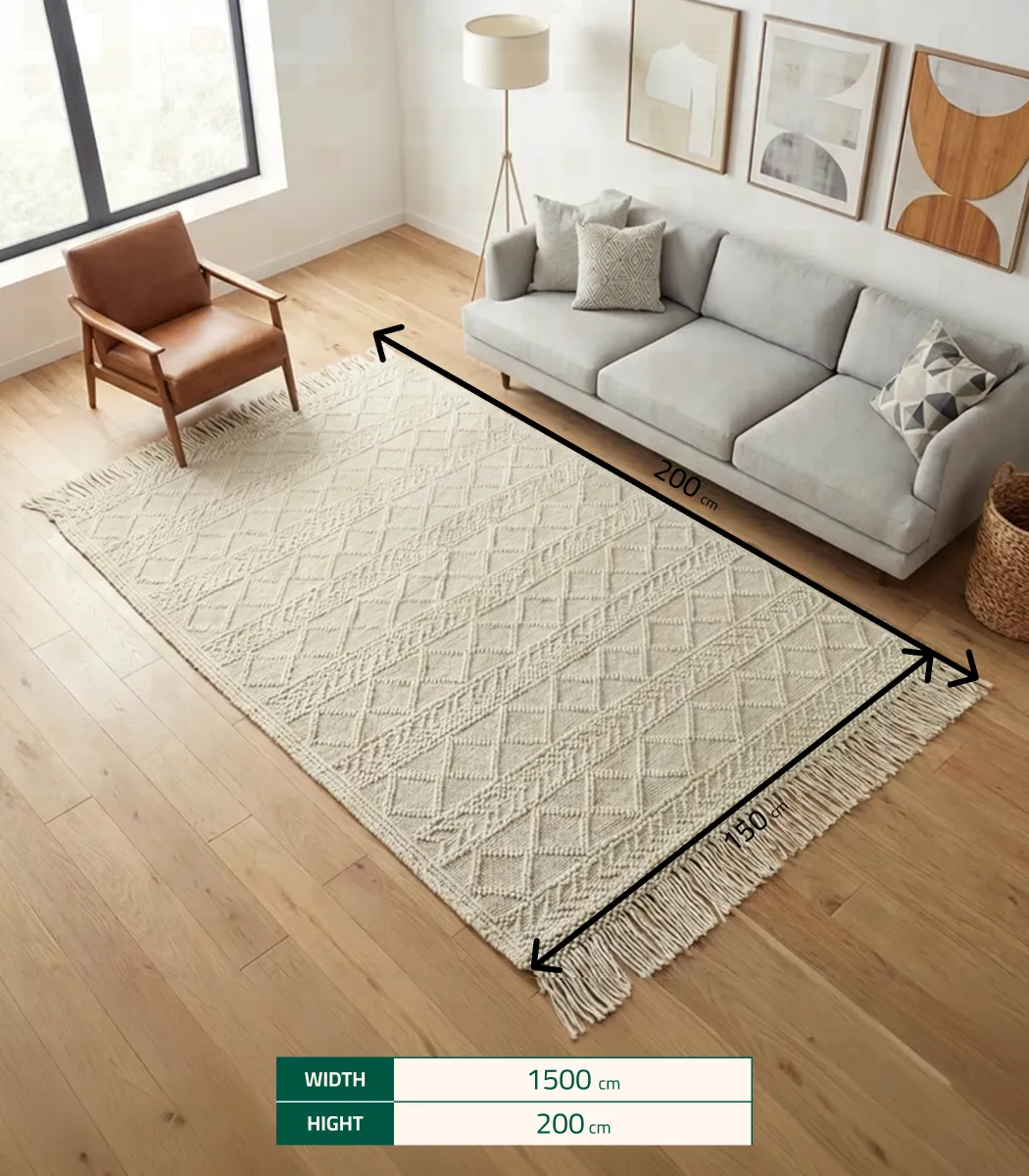 Rufaida بتكشف عن سجادة صوف كقطعة تجمع بين العملية والأناقة. خامة ألياف مع درجة بيج بتمنح القطعة شكل أنيق ومريح. تصميم متوازن يجمع بين الجمال والراحة.