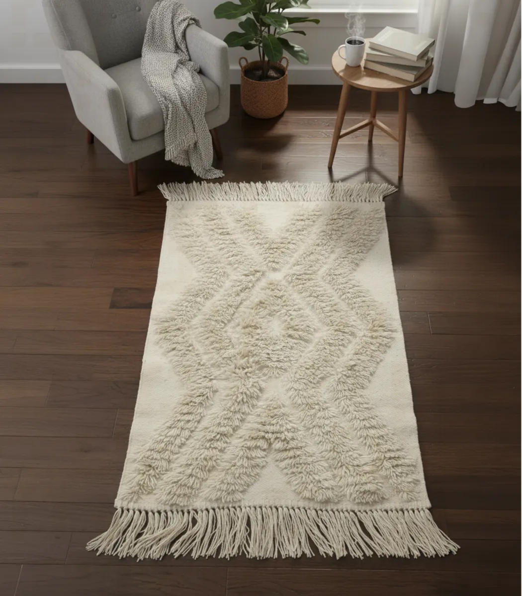 تقدم روفيدا سجادة الصوف، المصممة خصيصاً لمن يقدرون الجماليات الراقية. تتميز السجادة بمزيج أنيق من نسيج الألياف ودرجات اللون البيج، مما يضفي لمسة جمالية على المساحات الفاخرة. عنصر راقٍ يكمل روعة التصميمات الداخلية الأنيقة.