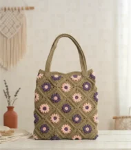اكتشفي سحر التصميم اليدوي في شنطة كتف من Vanilla Handecrafts. مصنوع يدويًا من ألياف بتصميم بوهيمي مميز ولون متعدد الألوان جذاب، ليجمع بين الحرفية العالية والجمال البوهيمي في قطعة واحدة لا مثيل لها.