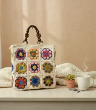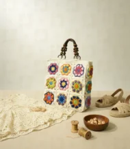اكتشفي سحر التصميم اليدوي في شنطة يد من Vanilla Handecrafts. مصنوع يدويًا من ألياف بتصميم بوهيمي مميز ولون متعدد الألوان جذاب، ليجمع بين الحرفية العالية والجمال البوهيمي في قطعة واحدة لا مثيل لها.