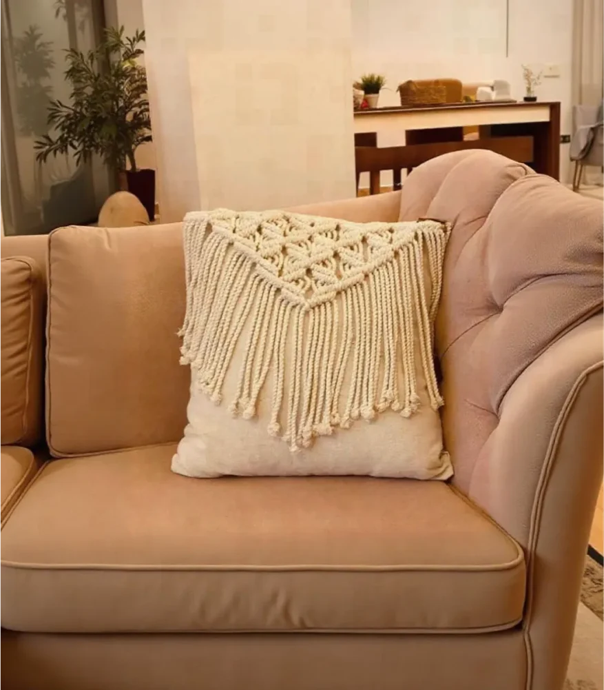 أضف لمسة من الأناقة إلى مساحتك مع غطاء الوسادة هذا المصنوع يدويًا من براند لمسة. مصنوع من ألياف، بتصميم بوهيمي، متوفر بلون اوف وايت، ويأتي بمقاس 40×40 سم. مثالي لغرفة المعيشة أو النوم أو المكتب.