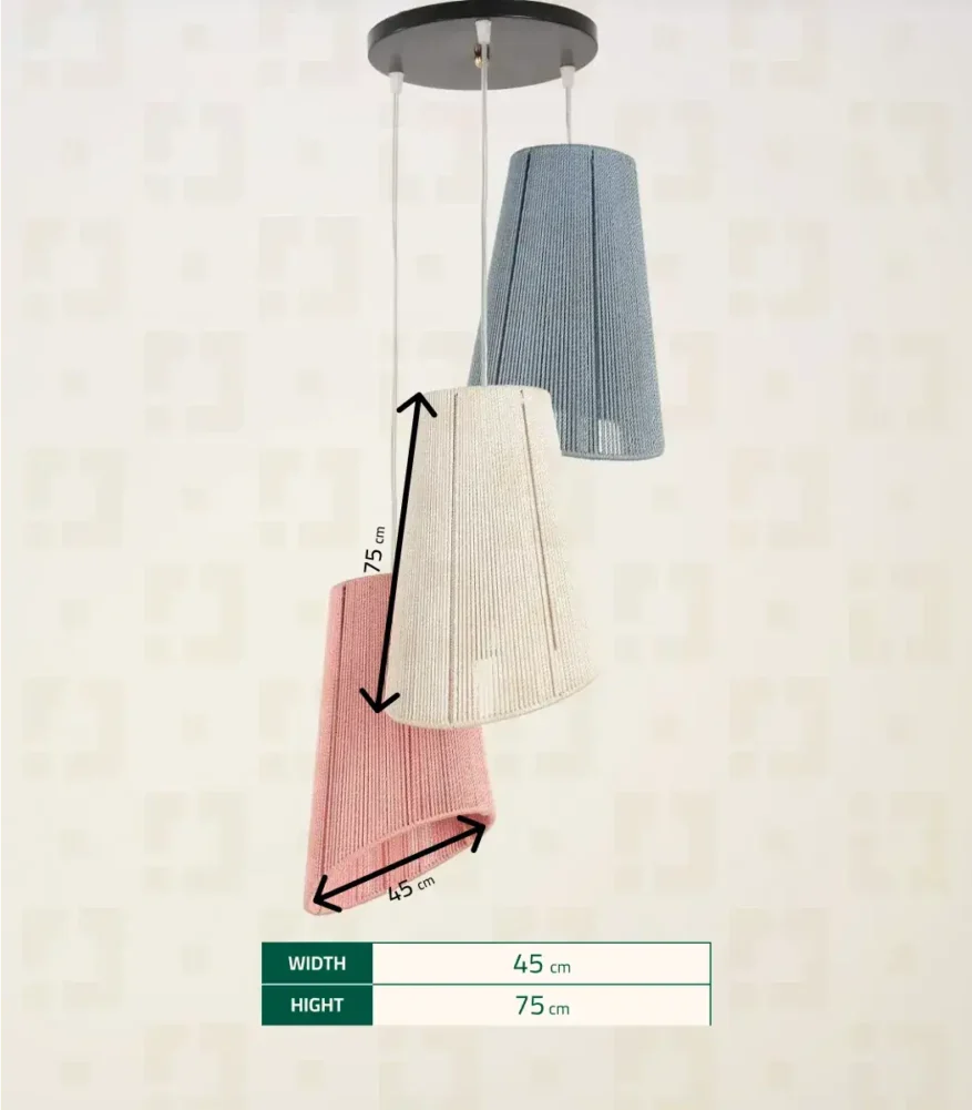 أضف لمسة من الأناقة إلى منزلك مع ماكراميه بثلاثة مصابيح من الشيخ سعد. مصنوع يدويًا من الألياف والمعادن، بتصميم حديث أنيق ولون متعدد الألوان جذاب وبمقاس 45*75 سم. يجمع بين البساطة والفخامة ليمنح منزلك لمسة من السحر والجمال.