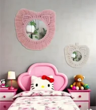 مرآة مكرمية قطعتين من براند خيوط مصنوعة يدويًا باستخدام الألياف وزجاج، بتصميم بوهيمي مميز و متعددة الالوان المميزة. تضيف لمسة طبيعية وفنية لغرفة النوم أو المعيشة. مناسبة لمساحات بمقاس 35×45 سم.