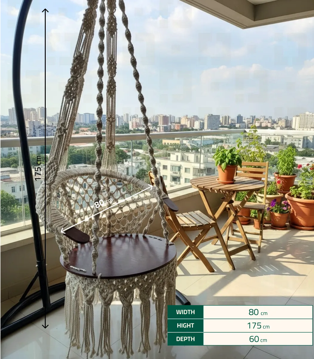 أضف لمسة خاصة إلى منزلك مع مرجيحه من Sugar crafts . مصنوعة من الألياف والمعادن، بتصميم بوهيمي وباللون اوف وايت، بمقاس 60*80*175 سم.