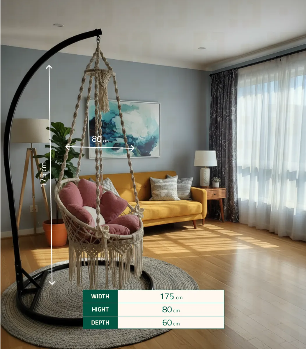 أضف لمسة خاصة إلى منزلك مع مرجيحه من Sugar crafts . مصنوعة من الألياف والمعادن، بتصميم بوهيمي وباللون اوف وايت، بمقاس 60*80*175 سم.