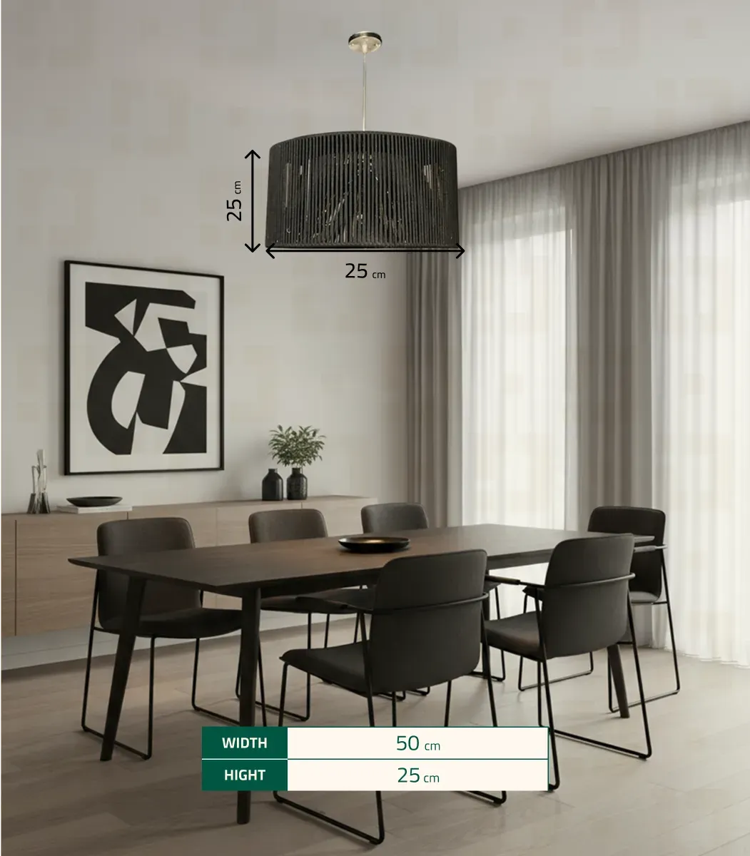 اجعل كل زاوية في منزلك تنبض بالدفء مع مصباح سقف بوهو من الشيخ سعد. مصنوع يدويًا من الألياف والمعادن، بتصميم حديث أنيق ولون اسود جذاب وبمقاس 50*25 سم. يجمع بين البساطة والفخامة ليمنح منزلك لمسة من السحر والجمال.