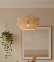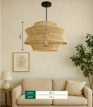 اجعل كل زاوية في منزلك تنبض بالدفء مع مصباح سقف بوهو من الشيخ سعد. مصنوع يدويًا من الألياف والمعادن، بتصميم حديث أنيق ولون بيج جذاب وبمقاس 45*60 سم. يجمع بين البساطة والفخامة ليمنح منزلك لمسة من السحر والجمال.