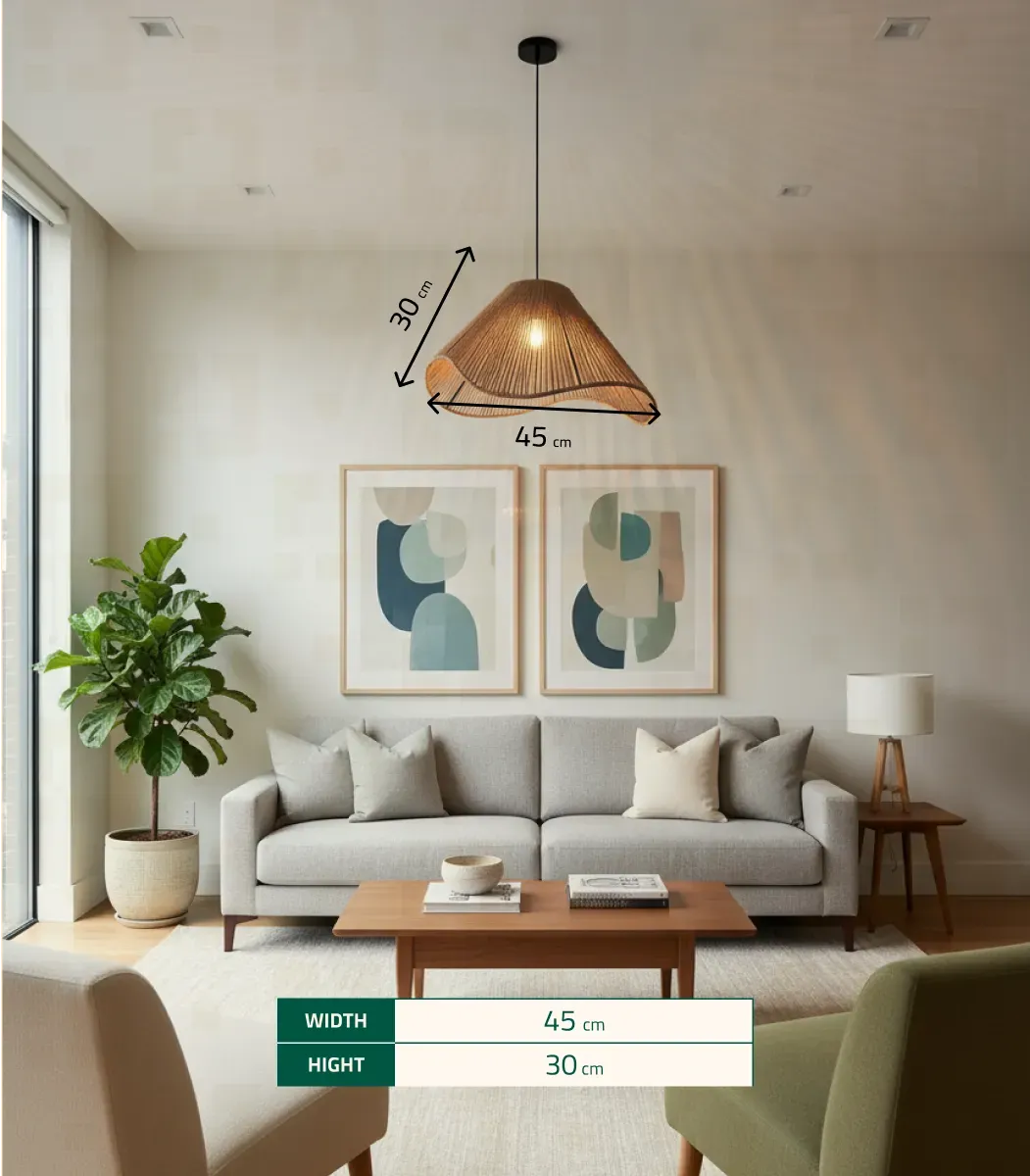 اجعل كل زاوية في منزلك تنبض بالدفء مع مصباح سقف بوهو من الشيخ سعد. مصنوع يدويًا من الألياف والمعادن، بتصميم حديث أنيق ولون بيج جذاب وبمقاس 45*30 سم. يجمع بين البساطة والفخامة ليمنح منزلك لمسة من السحر والجمال.
