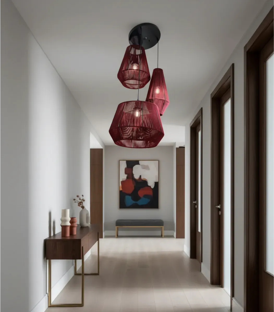اختيار مثالي لعشاق الجمال الطبيعي، مصباح سقف بوهو من الشيخ سعد. مصنوع يدويًا من الألياف والمعادن، بتصميم حديث أنيق ولون بورجووندي جذاب وبمقاس 20*25*30 سم. يجمع بين البساطة والفخامة ليمنح منزلك لمسة من السحر والجمال.