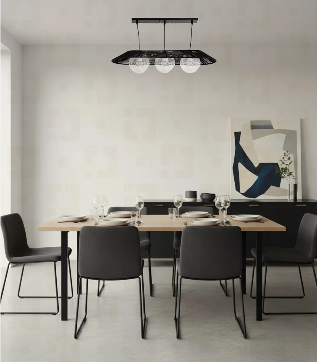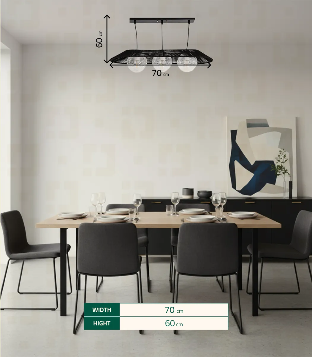 اجعل كل زاوية في منزلك تنبض بالدفء مع مصباح سقف مكرميه من الشيخ سعد. مصنوع يدويًا من الألياف والمعادن، بتصميم حديث أنيق ولون اسود جذاب وبمقاس 60*70 سم. يجمع بين البساطة والفخامة ليمنح منزلك لمسة من السحر والجمال.