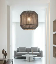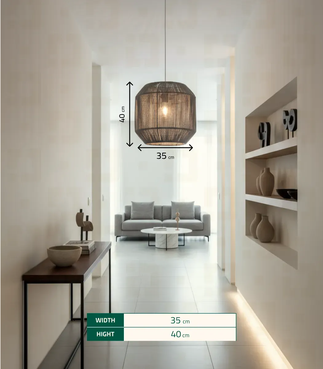 أضف لمسة من الأناقة إلى منزلك مع مصباح سقف مكرميه من الشيخ سعد. مصنوع يدويًا من الألياف والمعادن، بتصميم حديث أنيق ولون رمادى جذاب وبمقاس 40*35 سم. يجمع بين البساطة والفخامة ليمنح منزلك لمسة من السحر والجمال.