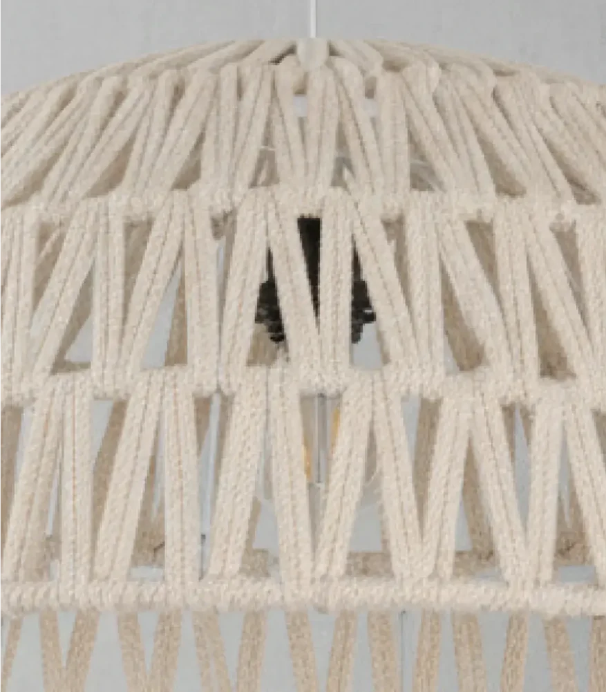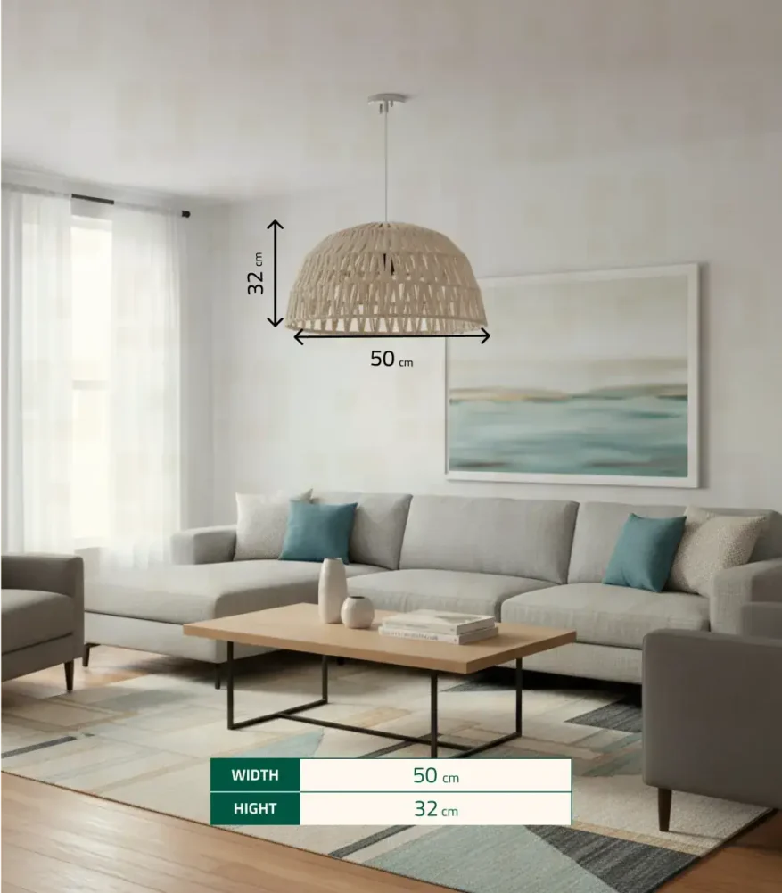 ارتقِ بإضاءة منزلك مع مصباح سقف مكرميه المميز من الشيخ سعد. مصنوع يدويًا من الألياف والمعادن، بتصميم حديث أنيق ولون اوف وايت جذاب وبمقاس 50*32 سم. يجمع بين البساطة والفخامة ليمنح منزلك لمسة من السحر والجمال.
