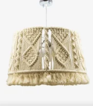 ارتقِ بإضاءة منزلك مع مصباح سقف مكرميه المميز من الشيخ سعد. مصنوع يدويًا من الألياف والمعادن، بتصميم حديث أنيق ولون اوف وايت جذاب وبمقاس 50×35 سم. يجمع بين البساطة والفخامة ليمنح منزلك لمسة من السحر والجمال.