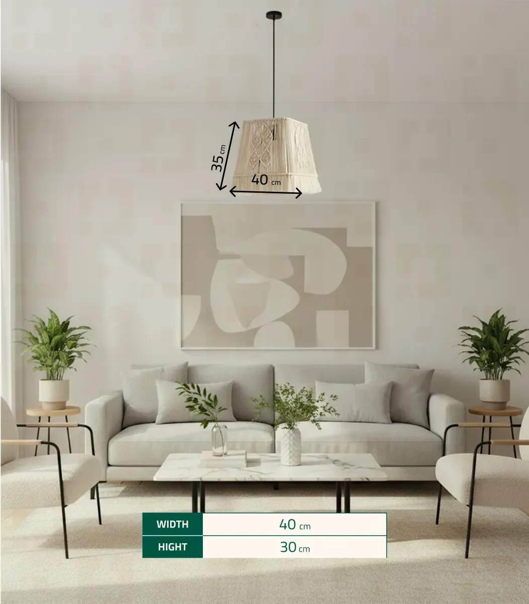 ارتقِ بإضاءة منزلك مع مصباح سقف مكرميه المميز من الشيخ سعد. مصنوع يدويًا من الألياف والمعادن، بتصميم حديث أنيق ولون اوف وايت جذاب وبمقاس 35*40 سم. يجمع بين البساطة والفخامة ليمنح منزلك لمسة من السحر والجمال.