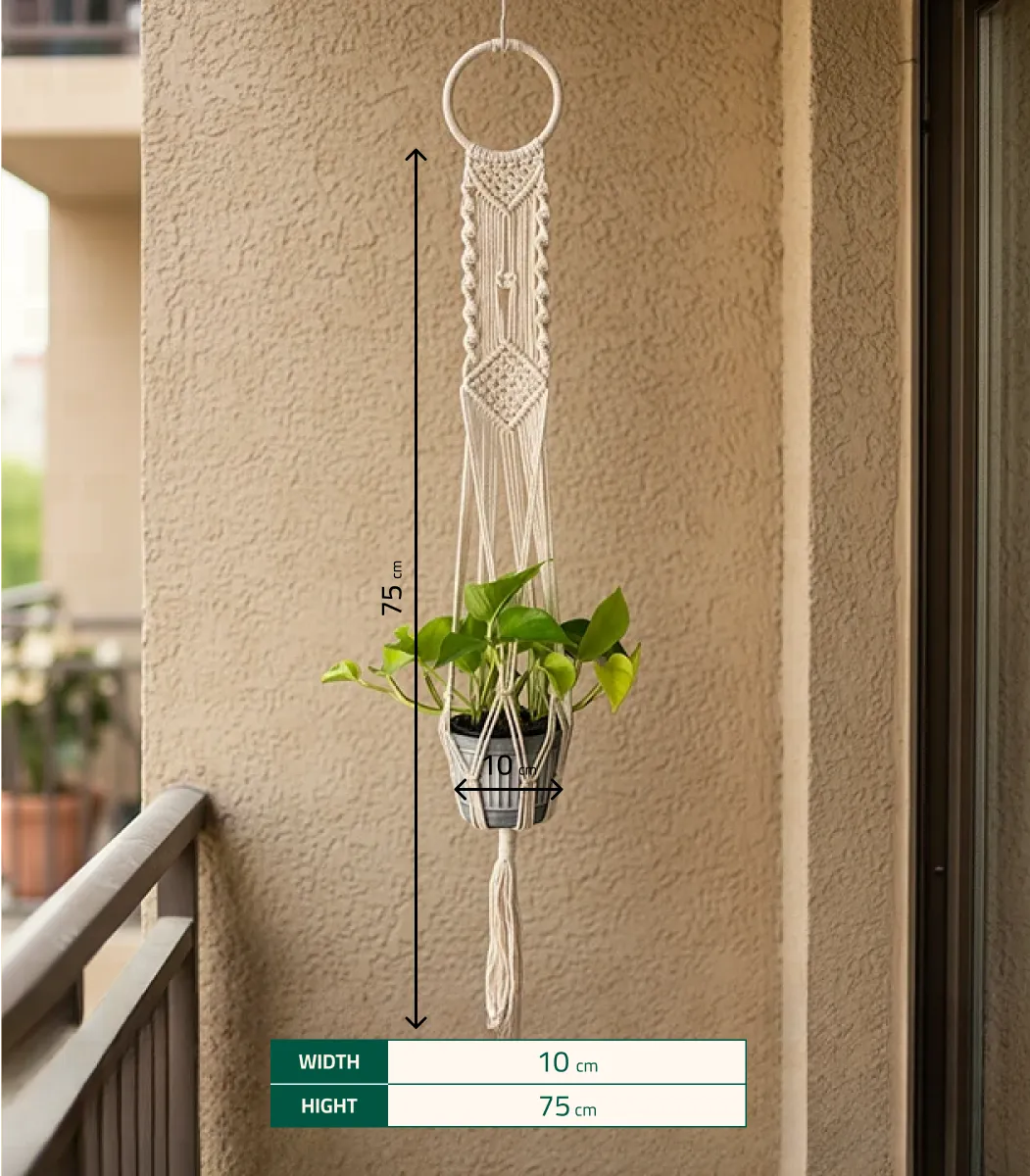أضف لمسة من الدفء والتميز إلى مساحتك مع معلقة نباتات المصنوعة يدويًا من براند أنتيكيانو. مصنوعة بعناية من الألياف والمعادن بتصميم ريفي، حديث، بوهيمي، كلاسيكي، بسيط وبلون اوف وايت، وتمتزج بسلاسة مع ديكور منزلك. مثالية لغرف المعيشة وغرف النوم والمداخل، وتضفي لمسة طبيعية وحرفية على أي جدار. يناسب تمامًا المساحات ذات الحجم 10×75 سم.