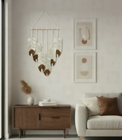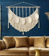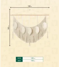 أحيانًا، كل ما تحتاجه غرفتك هو قطعة واحدة لتشعر بالاكتمال. هذه مكرمية معلقة علي الحائط المصنوعة يدويًا من براند أنتيكيانو يُلبي هذا تمامًا. صُمم بعناية باستخدام الألياف والخشب، وبنمط بوهيمي, ريفي وبلون بيج، ليُشكل نقطة محورية أنيقة تنسجم بسلاسة مع التصميمات الداخلية الفريدة والطبيعية. مقاسه 100×100 سم.
