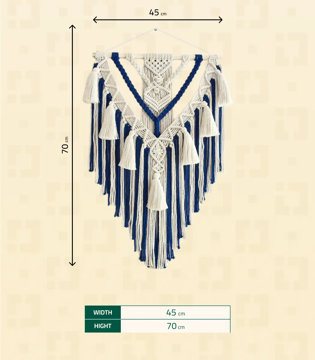 أحيانًا، كل ما تحتاجه غرفتك هو قطعة واحدة لتشعر بالاكتمال. هذه مكرمية معلقة علي الحائط المصنوعة يدويًا من براند أنتيكيانو يُلبي هذا تمامًا. صُمم بعناية باستخدام الألياف والخشب، وبنمط بوهيمي, ريفي و متعدد الألوان، ليُشكل نقطة محورية أنيقة تنسجم بسلاسة مع التصميمات الداخلية الفريدة والطبيعية. مقاسه 45×70 سم.