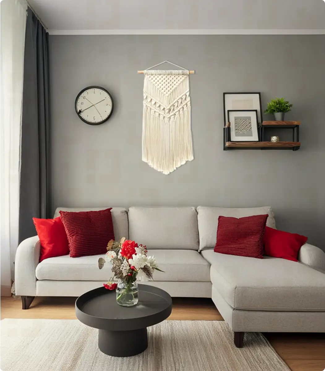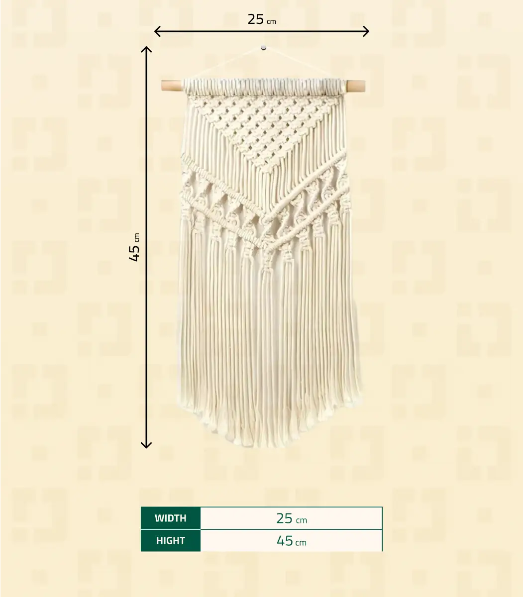 أحيانًا، كل ما تحتاجه غرفتك هو قطعة واحدة لتشعر بالاكتمال. هذه مكرمية معلقة علي الحائط المصنوعة يدويًا من براند أنتيكيانو يُلبي هذا تمامًا. صُمم بعناية باستخدام الألياف والخشب، وبنمط بوهيمي، ريفي وبلون اوف وايت، ليُشكل نقطة محورية أنيقة تنسجم بسلاسة مع التصميمات الداخلية الفريدة والطبيعية. مقاسه 25×45 سم.